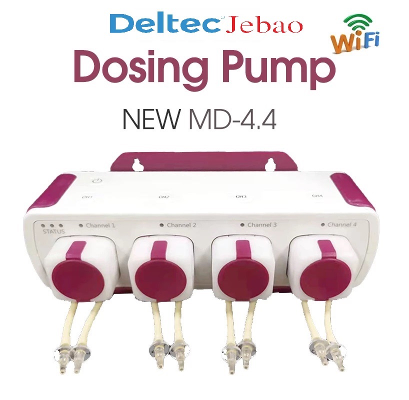 The Deltec Jebao dosing pump MD 4.4 is a newly innovated WIFI smart and affordable dosing pump with 4 dosing heads.